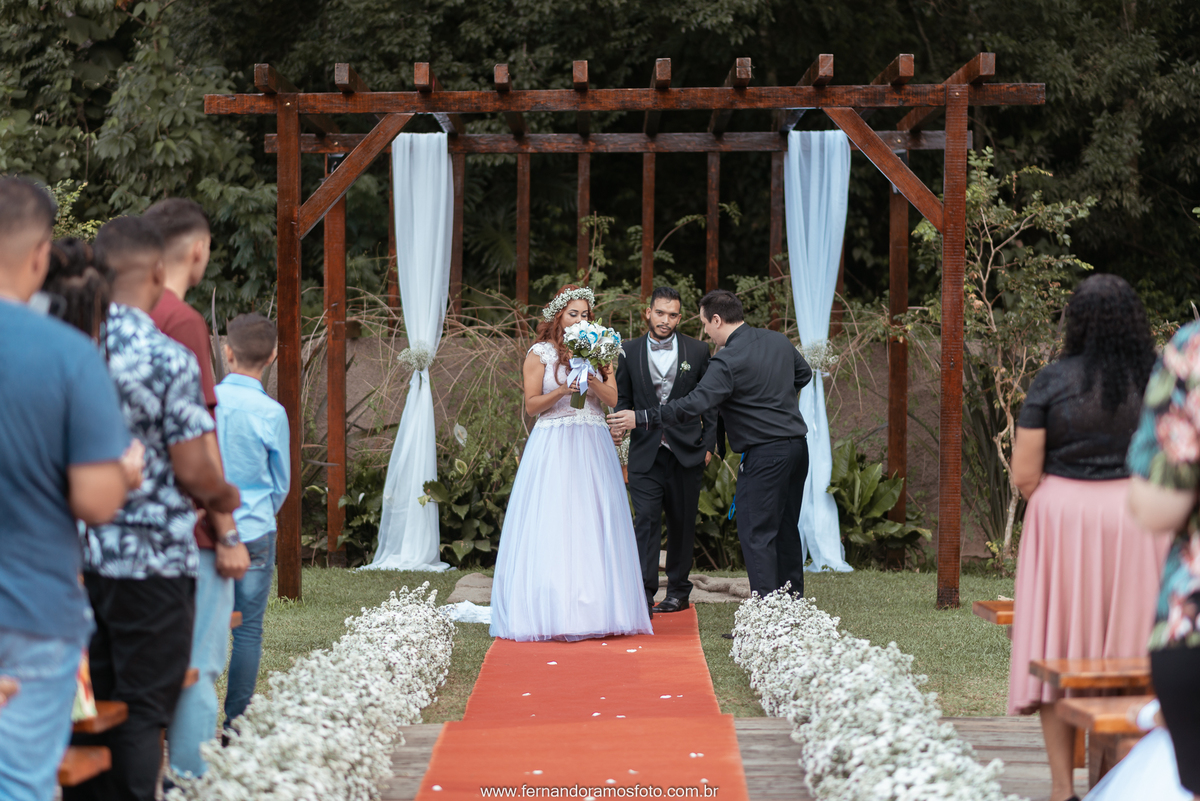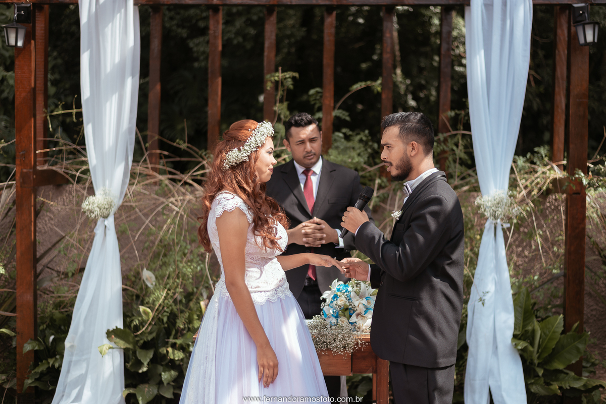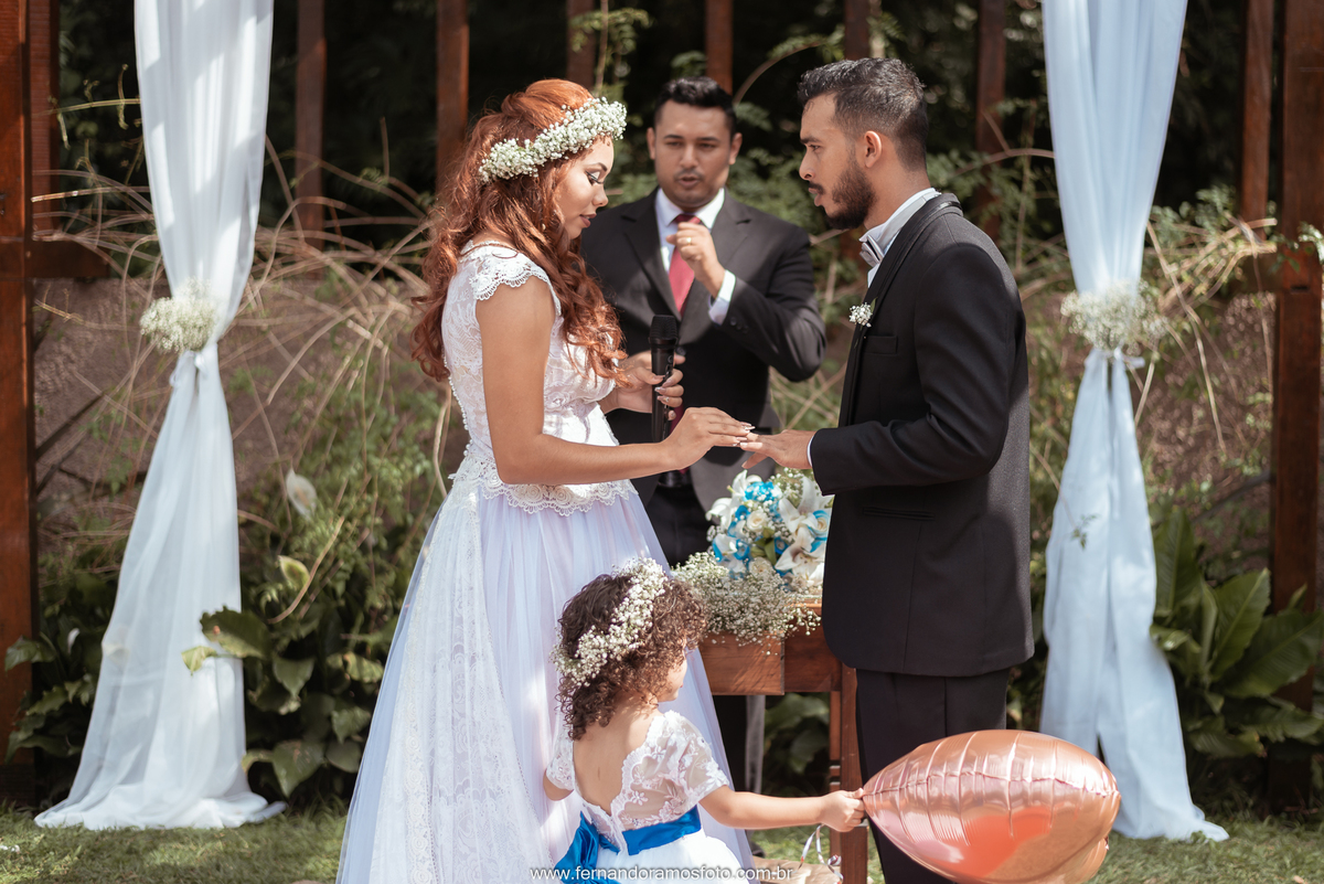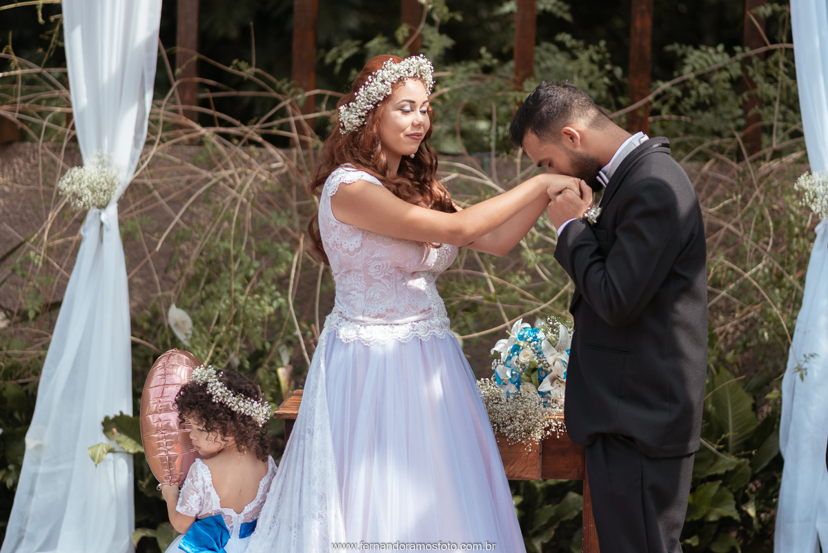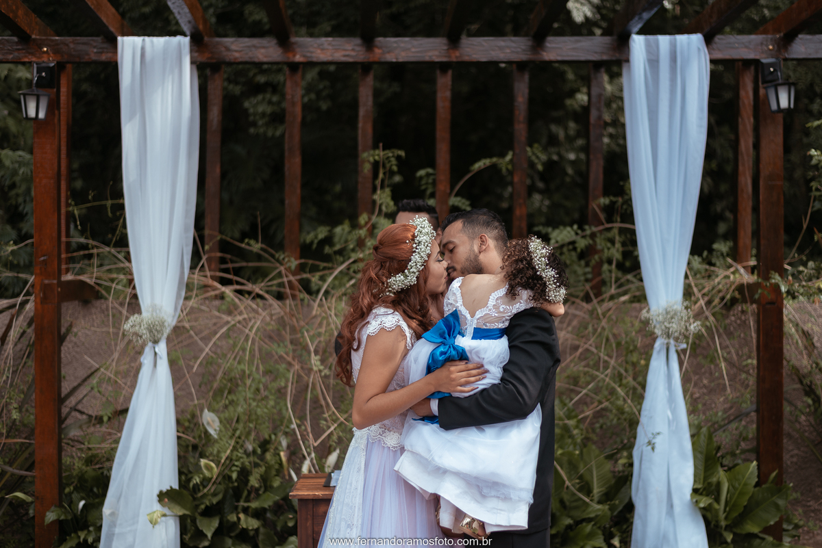 Eles nos disseram que estão juntos a 5 anos, a Andressa tem 19 anos e o Isaac tem 21 , eles fazem trabalhos com recreações infantil aos finais de semana e para conseguir uma renda extra pra ajudar nas despesas do casamento, eles foram as ruas para vender balas. Dessa união eles já foram presenteados com o nascimento da Anny Isabelly de 2 anos e o Davy Miguel de 8 meses, que entrou no colo do Isaac durante a cerimônia.