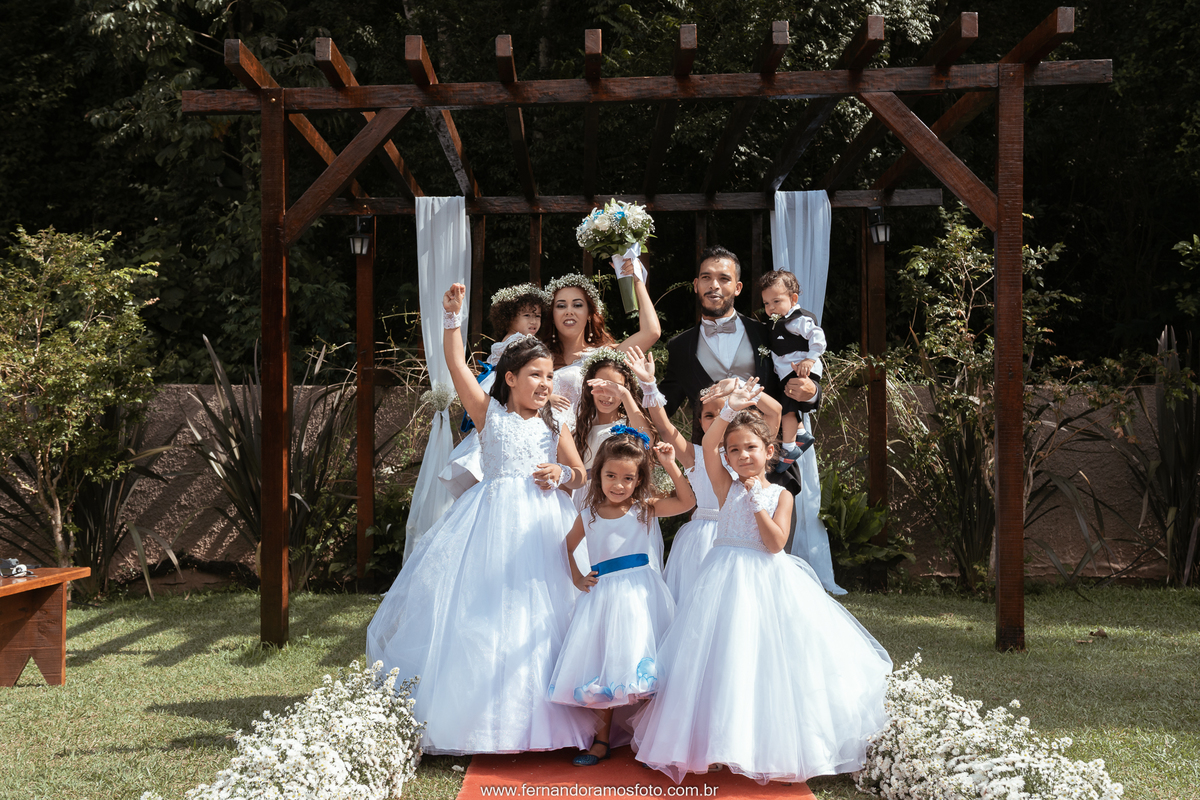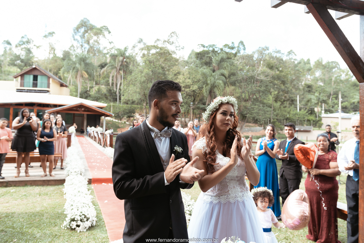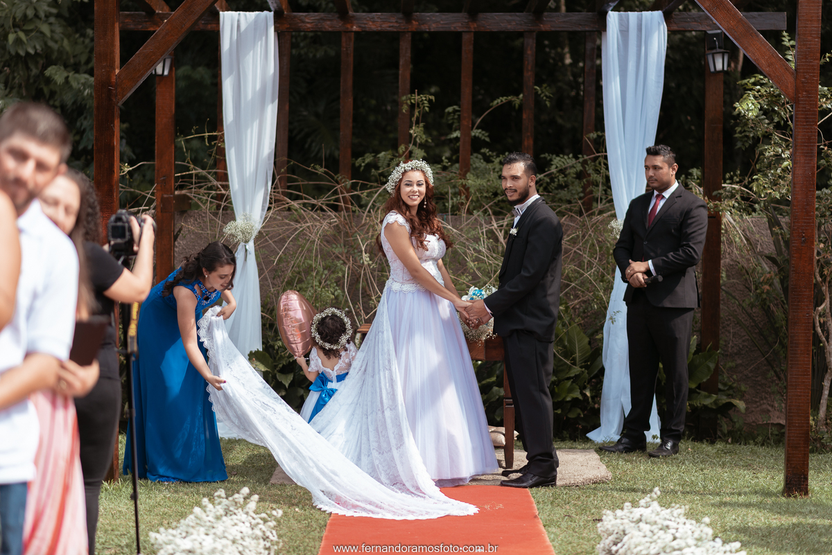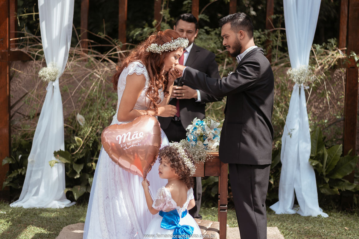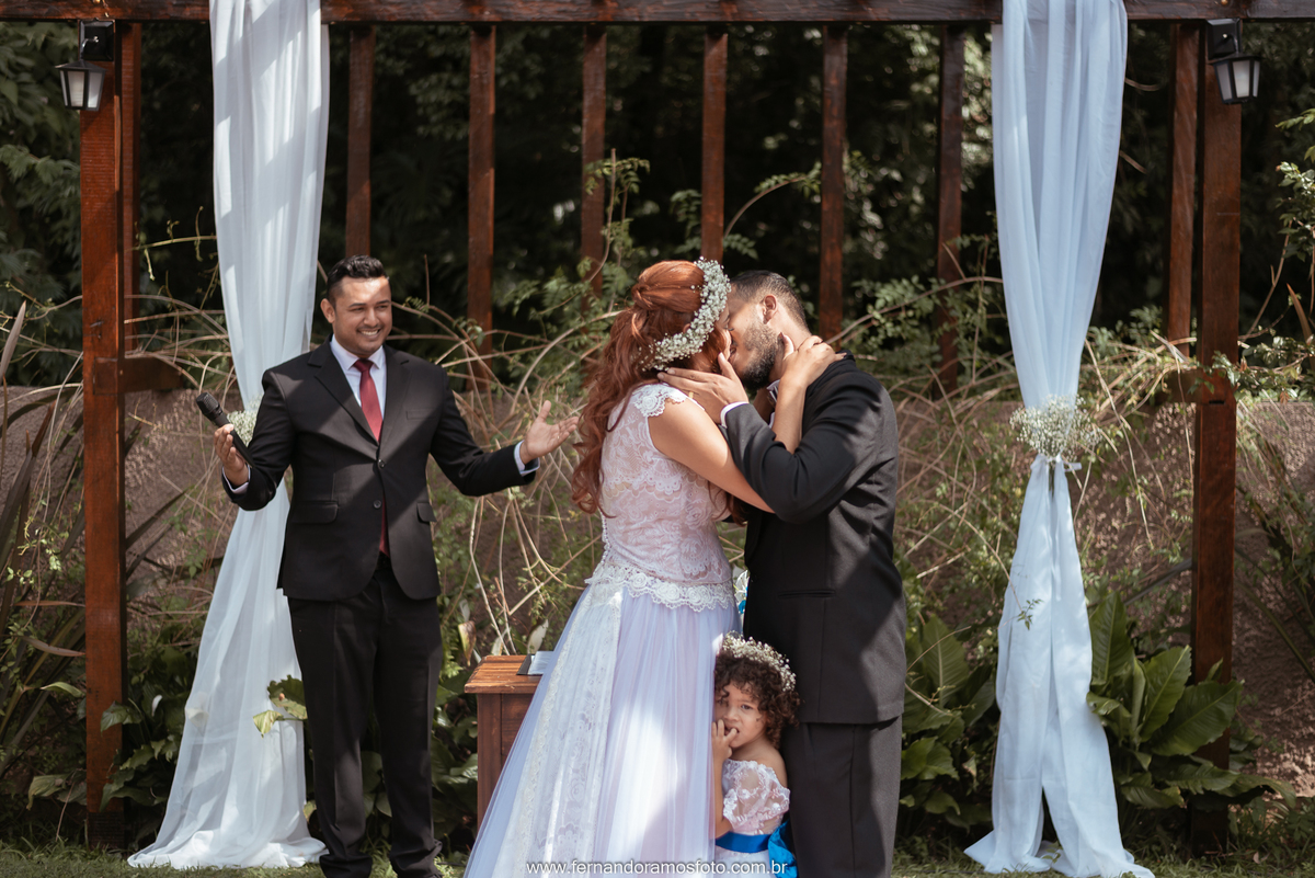 Eles nos disseram que estão juntos a 5 anos, a Andressa tem 19 anos e o Isaac tem 21 , eles fazem trabalhos com recreações infantil aos finais de semana e para conseguir uma renda extra pra ajudar nas despesas do casamento, eles foram as ruas para vender balas. Dessa união eles já foram presenteados com o nascimento da Anny Isabelly de 2 anos e o Davy Miguel de 8 meses, que entrou no colo do Isaac durante a cerimônia.